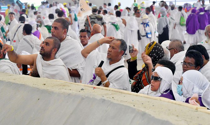 Pilgrim Moueeneddine Ahmed, 35, from Bangladesh, complained of the scorching heat but said he was “very excited” to take part in the ceremony.
