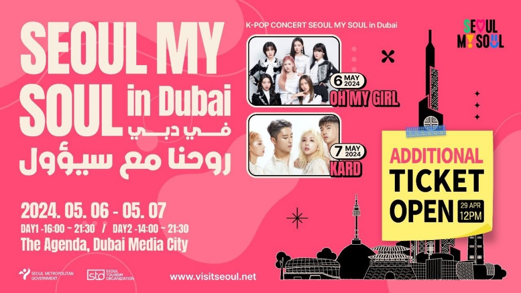 The Seoul Metropolitan Government and the Seoul Tourism Organization are hosting a tourism promotion event, ‘Seoul My Soul in Dubai’, on May 6th and 7th at Dubai’s The Agenda to showcase the charms of Seoul. The event aims to highlight the vibrant Seoul lifestyle and its soulful essence. The organizers have prepared a diverse program featuring a K-pop concert and fan appreciation events with popular K-pop artists OH MY GIRL and KARD, along with K-pop cover dance performances, a brand showcase of Seoul, lucky draw event, and much more.