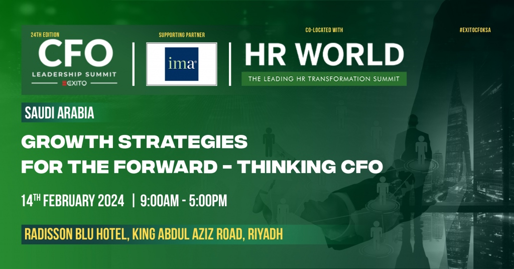 In a significant leap towards shaping the financial future of Saudi Arabia, Exito Media Concepts is proud to announce the upcoming "24th Edition of the CFO Leadership Summit'' scheduled to take place in the heart of the Kingdom. Recognizing the vital role that finance leaders play in steering organizations and economies, Exito Media Concepts is organising the CFO Leadership Summit. The summit serves as a beacon for thought leadership, fostering strategic discussions essential to the critical role finance leaders undertake.