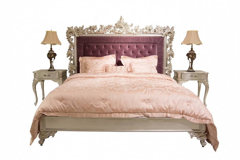 A range of silver leaf luxury bedroom furniture is available that will complement this stunning bed. That includes a Victor silver bench, with twilight magenta velvet tufted seat with silver floral carvings.