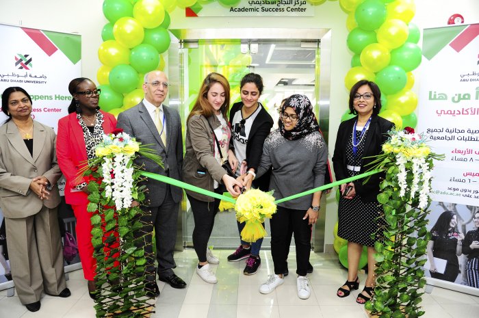 The Academic Success Center was inaugurated by the presidents of the Student Council in the presence of Dr. Waqar Ahmad, Chancellor of Abu Dhabi University, alongside the college deans, faculty members and students, who came together at a ribbon-cutting ceremony last week marking its official opening.
