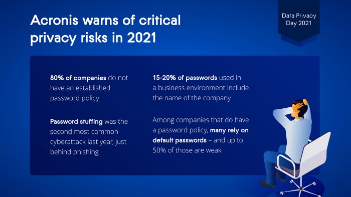The latest research by the cybersecurity experts at the global network of Acronis Cyber Protection Operations Centers (CPOCs) revealed that 80% of companies do not have an established password policy. Between 15-20% of the passwords used in a business environment include the name of the company, making them easier to compromise. Two recent high-profile breaches illustrate this problem: Before its Orion compromise, SolarWinds was warned that one of its update servers had a publicly known password of “solarwinds123”, while former President Donald Trump’s Twitter account was hacked because the password was allegedly “maga2020!”.