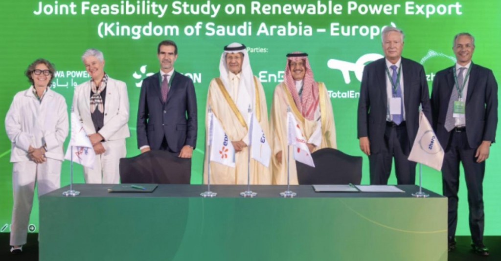 The MoUs include a multilateral agreement with European firms such as Italy’ Edison, France’s TotalEnergies, Netherlands’ Zenobe, and Germany’s EnBW, with the aim of exporting Saudi renewable electricity to Europe.