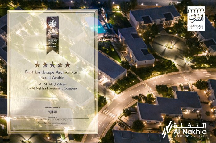Al Nakhla Investment has achieved another milestone with its project “Al Sharq Village” in Riyadh, winning the Best Landscape Architectural Design Award for 2025 at the prestigious Arabian Property Awards held in Dubai.