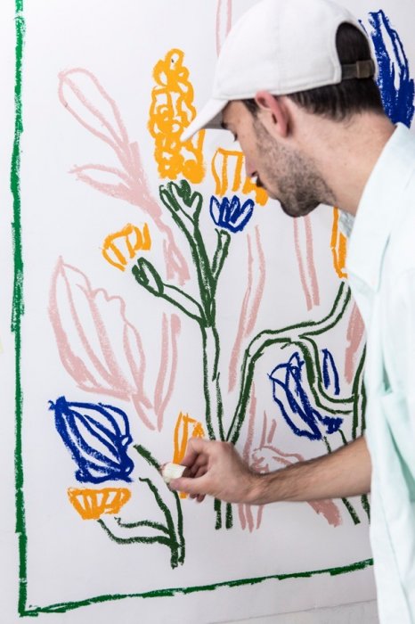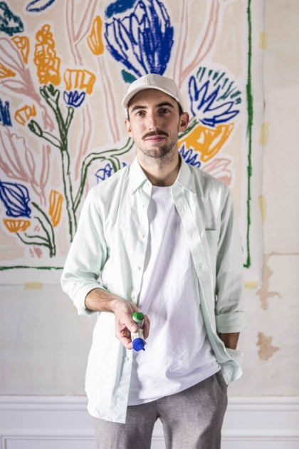 At the crossroads of art, illustration, design and architecture, Alexandre Benjamin’s work brings fresh and vibrant color surging into space, engaging directly with the viewer. Since his graduation from the École nationale supérieure de création industrielle ENSCI–Les Ateliers (the French national institute for advanced studies in industrial design) in 2011, his initial training has formed the basis for an approach that transforms surfaces in a juxtaposition of dazzling tones, objects and plays on perspective. A multi-disciplinary artist, he employs different techniques: oil pastels – his favorite medium –, pencil or Japanese watercolor. In 2017, Alexandre Benjamin Navet was awarded the Grand Prix Design Parade Toulon, sponsored by Van Cleef & Arpels. In 2018, he was the first artist to be given carte blanche by the MAD Paris – with “Espèces d’espaces” – at the Musée des Arts Décoratifs’ new Galerie d’Actualités.