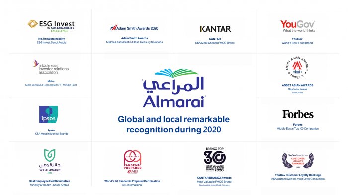 During the year 2020, Almarai won more than 12 awards and rankings at local, regional, and international levels in various financial, administrative, marketing, quality, safety, consumer satisfaction, and sustainability fields. To reinforce its commitment to its firm motto, “Quality you can trust“.