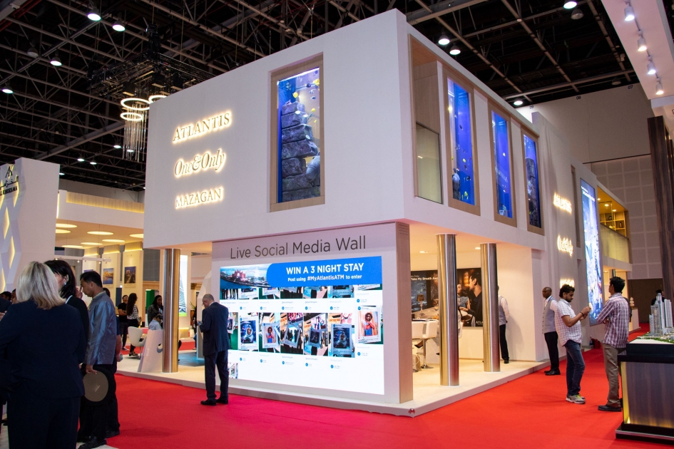 The two-storey ATM structure is showcasing Kerzner International’s global portfolio and latest developments. It spans 215sqm, (10m x 21.5m), and is located at Stand HC0230 in the Sheikh Saeed Arena. Guests to the stand will get a real-time glimpse into life at Atlantis and One&Only resorts, courtesy of a giant, 5m x 3m LED wall, featuring live social media streams, and guests to the stand will have the chance to win a 3-night stay at Atlantis, The Palm when posting on Instagram, using #MyAtlantisATM.