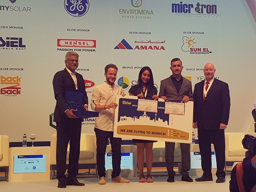 In addition to the financial award, the AUS team also won internship opportunities, a trip to visit Intersolar in Germany, a trophy and certificate from the Ministry of Energy, and commendation certificates from Middle East Solar Industry Association (MESIA) and Intersolar.