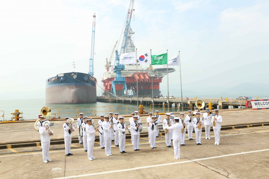 The new vessel, built to the latest environmental and fuel-efficient technical specifications, was handed over to Bahri during a delivery ceremony held at HSHI’s Mokpo shipyard in South Jeolla Province, South Korea. Senior Bahri and HSHI officials who attended the ceremony included Mr. Saleh Al-Debasi, Bahri Board Member, Dr. Abdulmalik Al-Hogail, Bahri Board Member, Mr. M. K. Yoon, President and CEO of HSHI, Mr. Hisham Al-Nughaimish, Acting President of Bahri Oil, among others.
