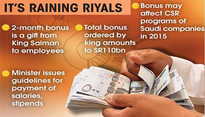 The total bonus for government employees, retirees and students would amount to SR110 billion.