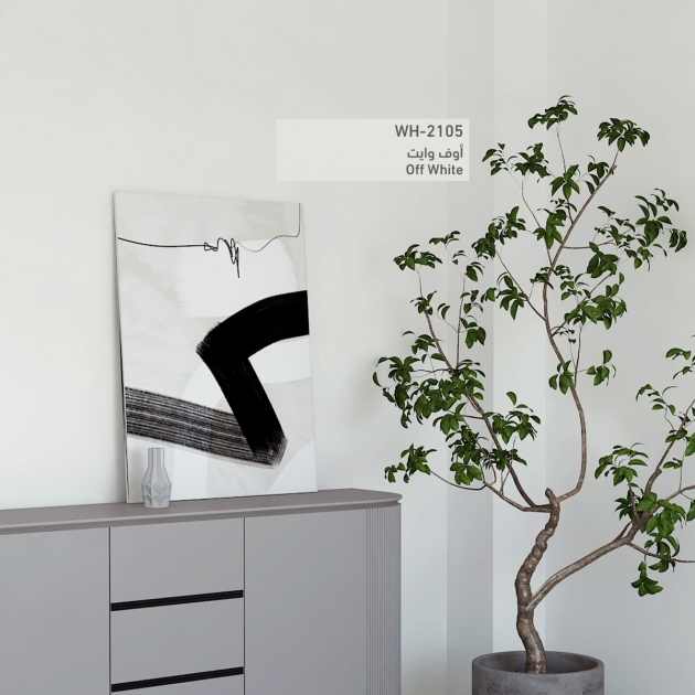 Off-whites are among the lightest shades, often leaning towards white in various degrees. Very light shades of off-white can be used on ceilings to blend well with walls without causing a significant contrast between the ceiling and the walls.