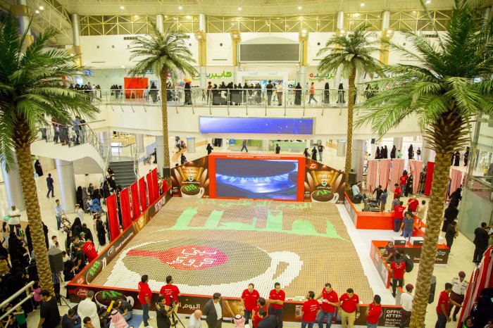 The bake-off for the new Guinness World Records title for the Largest mug cake mosaic was unveiled today at Al Andalus Mall in Jeddah, measuring 112 square-meters with approximately 19,600 Betty Crocker mug cakes. It took 30 bakers almost 8 hours to create the marvelous cake and decorate it by 1900 Betty Crocker cake frosting tubs that represented the Saudi 88th National Day design on top of it before Guinness World Records adjudicator, Ahmed Jamal Jaber, officially confirmed it as the Largest mug cake mosaic ever.