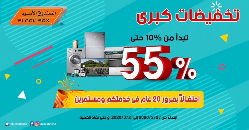 Because we are Celebrating our 20th anniversary Black Box Company offers the biggest sale, starting from 10% to 55%. Please visit you our braches in Riyadh or through our website.