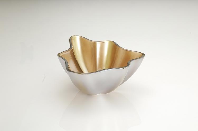 From the four-trill coalesce family of stunning glassware comes the Globus bowl that shines in a mother-of-pearl, opalescent color luminous under any lighting. Rimmed in gold, this stunning piece is devoted to the everlasting beauty of the world itself.