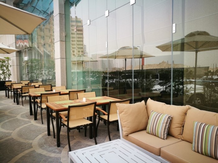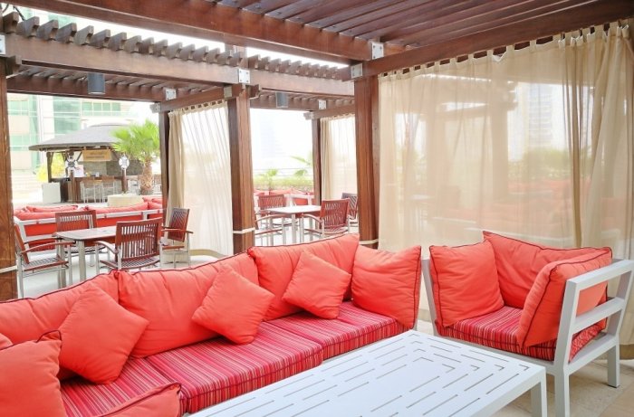 Adjacent to the fitness centre is the Gazebo Pool Terrace where individual guests or the whole family can swim, sunbathe, snack and splash around for hours. The striking orange-coloured sun lounges and cushions are enough reasons for young and adult guests to laze around the outdoor swimming pool. With a curtained pergola, families can enjoy time in their own cabana type setting, and watch the kids play in their own dedicated pool and play equipment. You can order light snacks and refreshing beverages such as blended soft drinks or innocent cocktails from Gazebo Terrace while taking in the beautiful sunsets over the skyline and Dubai Creek.