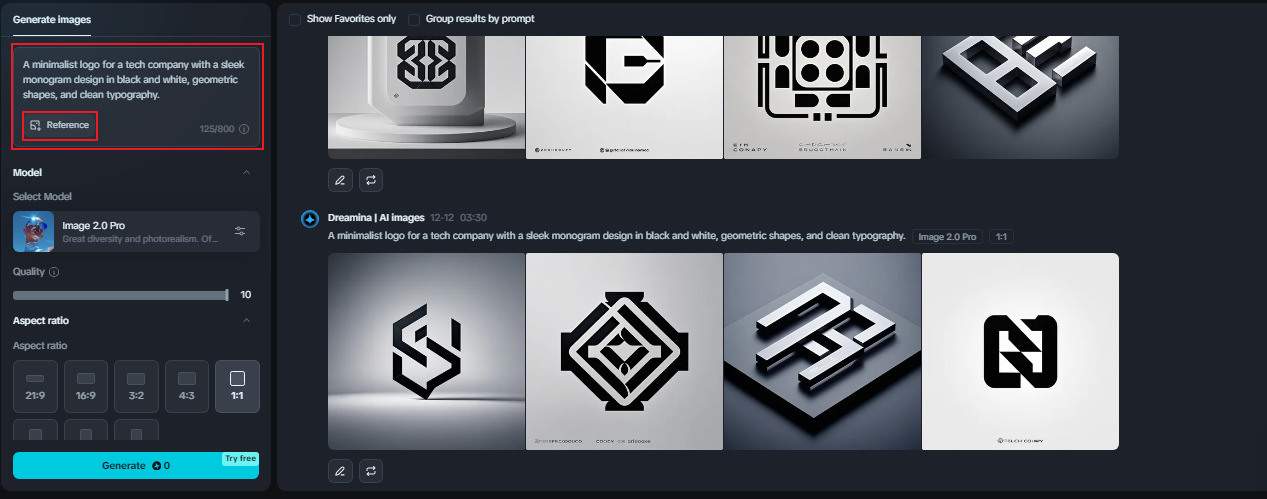 Dreamina has so many customizable options that you can create a logo that fits your brand's need precisely. You can select the aspect ratio: 1:1 for social media square logos; 3:2 for rectangular logos that are great for banners. Adjust it according to your needs for digital size like 500x500 pixels or print sizes. The quality scale ranges from 0 to 10, providing polished results. Click "Generate" after the setup, and Dreamina reveals unique variations of logos to express what you have written.
