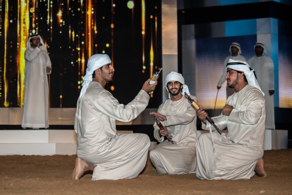 ‘Youllah’ is a well-established folk art over the years where an iconic rifle is spun around to the rhythmic beat of Arabic music. One of the heritage traditions performed by the young and the not so elderly during ceremonies, Youllah as a sport began with real weapons in the past and then evolved into a weapon used with a hollow inside and free of ammunition. Now it has become even more lighter enabling participants to display greater agility and more skills in a dance form.
