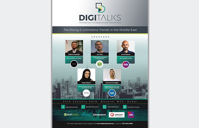 Digitalks, Middle East’s first digitally-focused conference series unveils its impressive line-up of renowned thought leaders. With the theme of “The Rising e-commerce Trends in the Middle East,” attendees will discuss the latest trends and solutions that will help them compete and win in today's dynamic digital environment.
