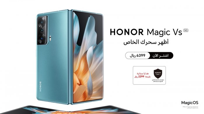 HONOR Magic Vs 5G will be available for purchase in KSA Markets at a price of SAR 6399 and special gifts worth SAR 2299 including HONOR Care+ (6 Month Screen Protection + 30 Days Malfunction Replacement.
