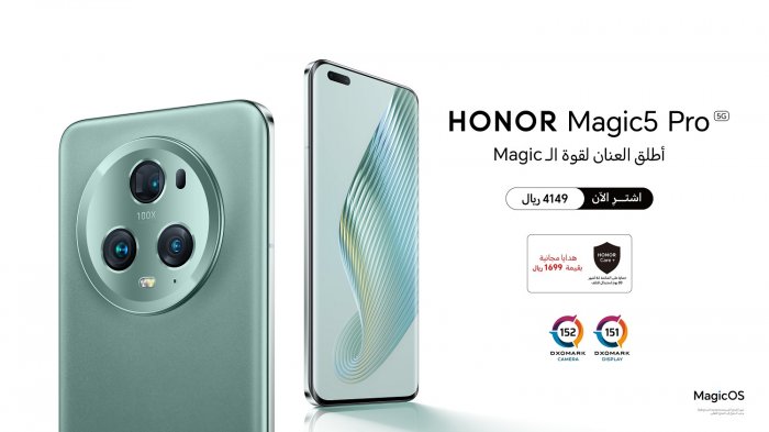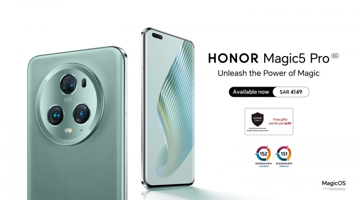HONOR Magic5 Pro 5G is available now in KSA markets at an amazing price of SAR 4149 and free gifts worth SAR 1699 including HONOR Care+ (6 Month Screen Protection + 30 Days Malfunction Replacement.