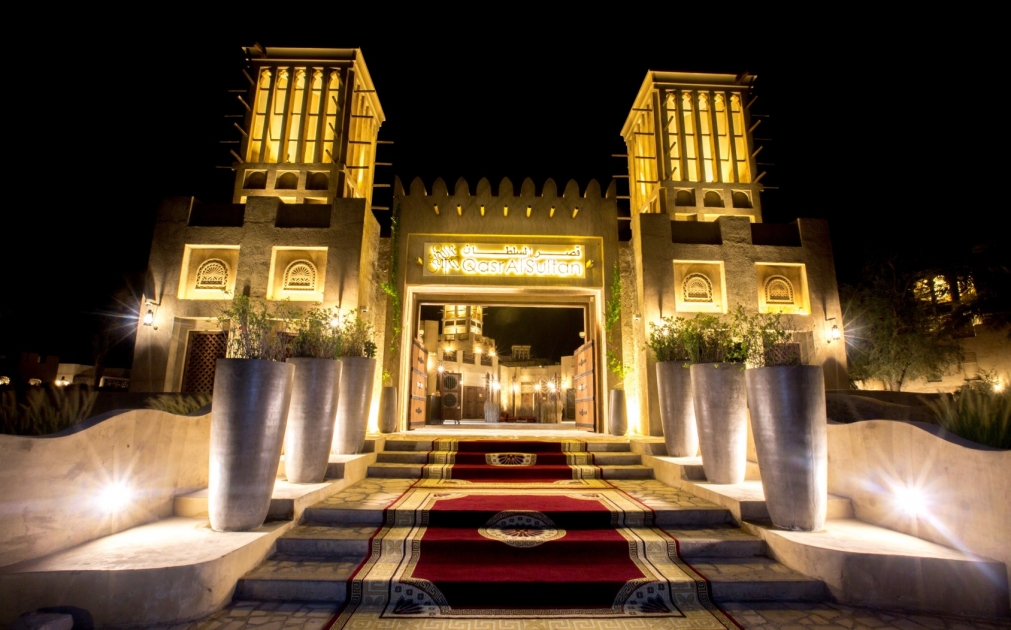 Qasr Al Sultan is a lifestyle destination situated in the Dubai desert. Located near Dubai Parks and Resorts, The Outlet Village and The Last Exit, Qasr Al Sultan is based on a Sultan’s palace and brings to life the celebrated luxury, hospitality and culinary richness of the region’s ancient monarchs. Open daily from 7 pm onwards, Qasr Al Sultan features an amphitheatre with a dining area, performance area and live cooking stations. Other facilities include a souq, shisha tent, kids club, private majlises, licensed lounge and library. Qasr Al Sultan launched its Boutique Hotel in September 2017. Distinctive and traditional in style, inviting guests to live like Sultans, the hotel combines luxury and the natural elements of Dubai’s enchanting landscape, within 12 spacious 100-square metre Royal Villas designed to complement the fine dining and cultural experiences that are already available at this bespoke getaway.