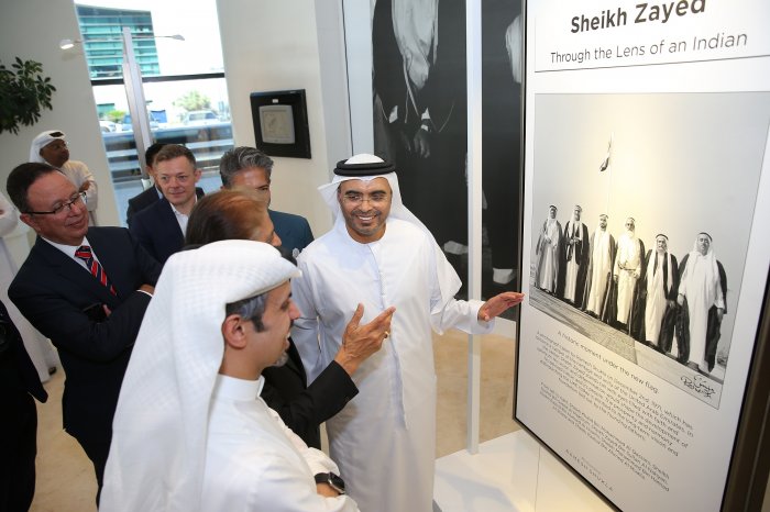 The exhibition features a collection of rare and unique photographs of the two leaders taken by renowned photographer Ramesh Shukla, along with important milestones in the UAE’s history over the last 50 years, including an iconic photograph of the country’s rulers taken on December 2nd 1971, which has become a symbol of unity.