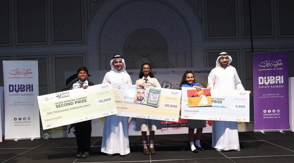 Dubai Culture & Arts Authority (Dubai Culture), the Emirate’s dedicated entity for culture, arts and heritage, has supported the ‘Zayed Painting Contest 2018’, which was launched by Infinity Event Management and aims to assemble student contributions from 100 schools across the UAE. One winning painting was selected from each school and entered a grand competition, which included a total of 100 paintings.