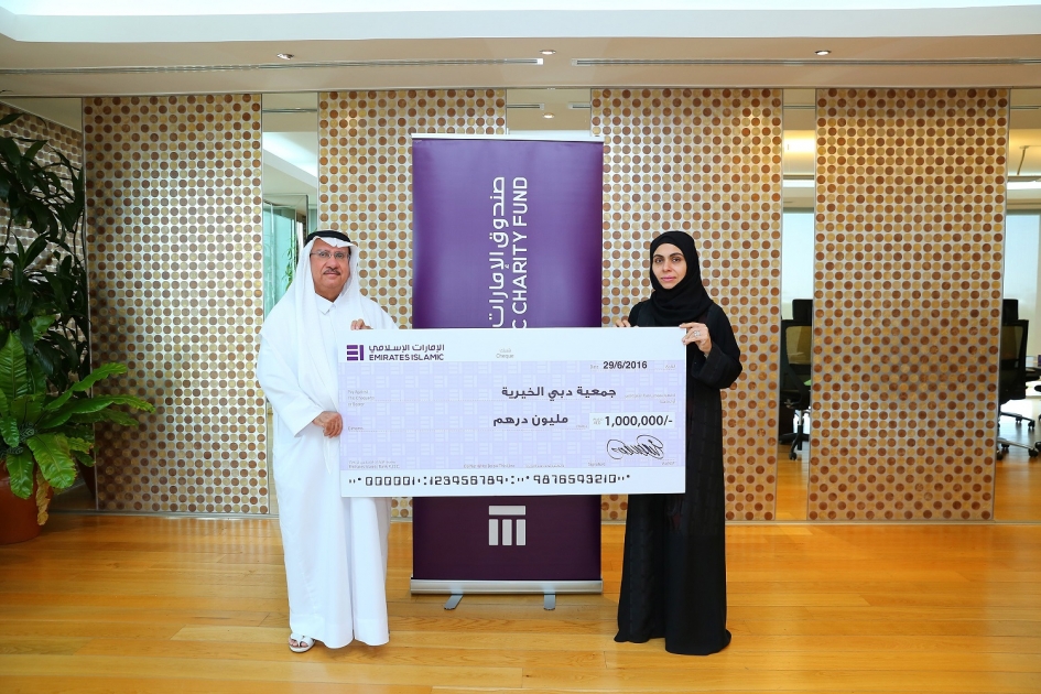 Emirates Islamic, one of the leading Islamic financial institutions in the UAE, today disbursed AED 1 million to Dubai Charity Association from its Zakat fund. The contribution will fund the association’s various charitable activities, such as helping the poor and needy and individuals in debt.