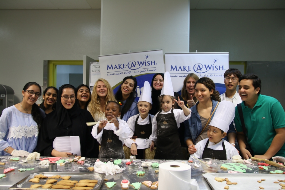 Emirates Palace’s Executive Team of Chefs worked with ACS and BSAK students and Make-A-Wish kids to decorate 300 festive-themed cookies to be sold at a bake sale managed by the two student led groups.