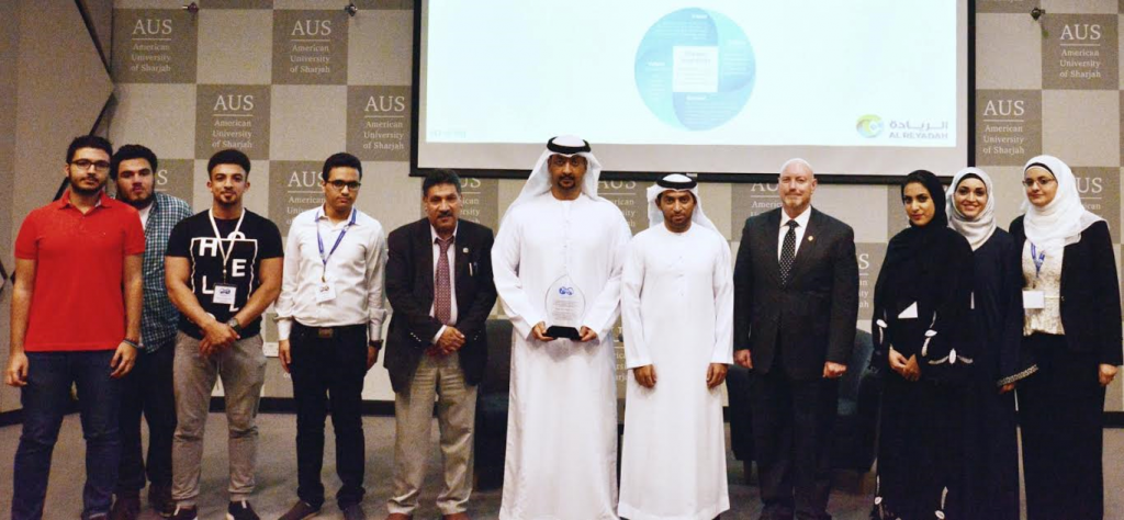 Engineer Al Yafei expressed his gratitude at being invited to speak at AUS and said, “It is a pleasure to be here at AUS. I am very fond of SPE as it is a major help for engineering students in developing their careers during their industrial experience.” During his talk, Al Yafei focused on three topics, namely: Greenhouse Gas emissions (Climate Change Impact), Production Sustainability (Enhanced Oil Recovery), and Al Reyadah.