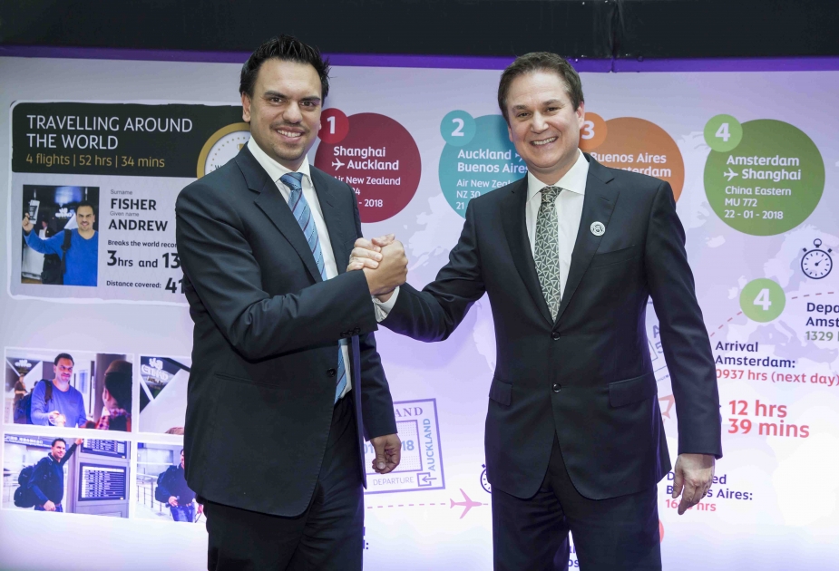 Andrew’s journey covered 41,375 km on scheduled flights operated by Air New Zealand, KLM and China Eastern that took him from Shanghai to Auckland; Buenos Aires to Amsterdam; and back to Shanghai.