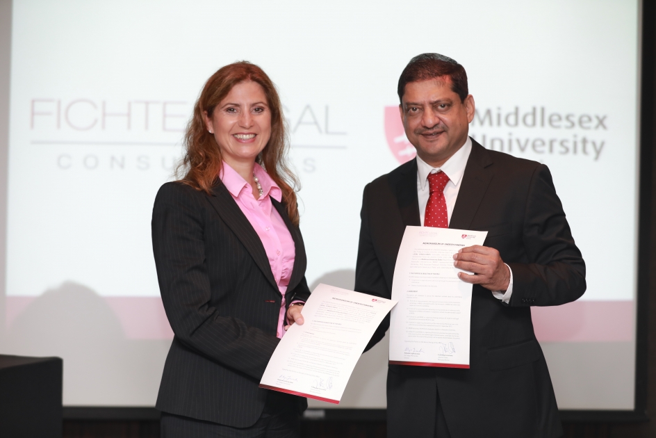 Fichte Legal Consultants and Middlesex University Dubai have partnered to establish a common platform in order to cultivate law students for their transition from academia to the professional industry. The partnership was sealed by the signing of a Memorandum of Understanding, where both parties committed to a mutually beneficial long-term agreement.