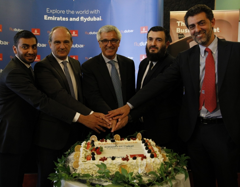 A senior delegation from Dubai, including H.E. Liborio Stellino, the Ambassador of Italy in the UAE, Jeyhun Efendi, Senior Vice President, Commercial Operations for flydubai, Thierry Aucoc, Senior Vice President, Commercial Operations (Europe & Russian Federation) for Emirates, arrived at Catania International Airport (CTA) to mark the start of direct flights between Dubai and Sicily. The delegation was met on the ground by Muhannad Alnaqbi, Deputy Head of the UAE Mission to Italy, and by Nico Torrisi, Chief Executive Officer for Società Aeroporto Catania (SAC). On arrival, the flight was met with a traditional water cannon salute.