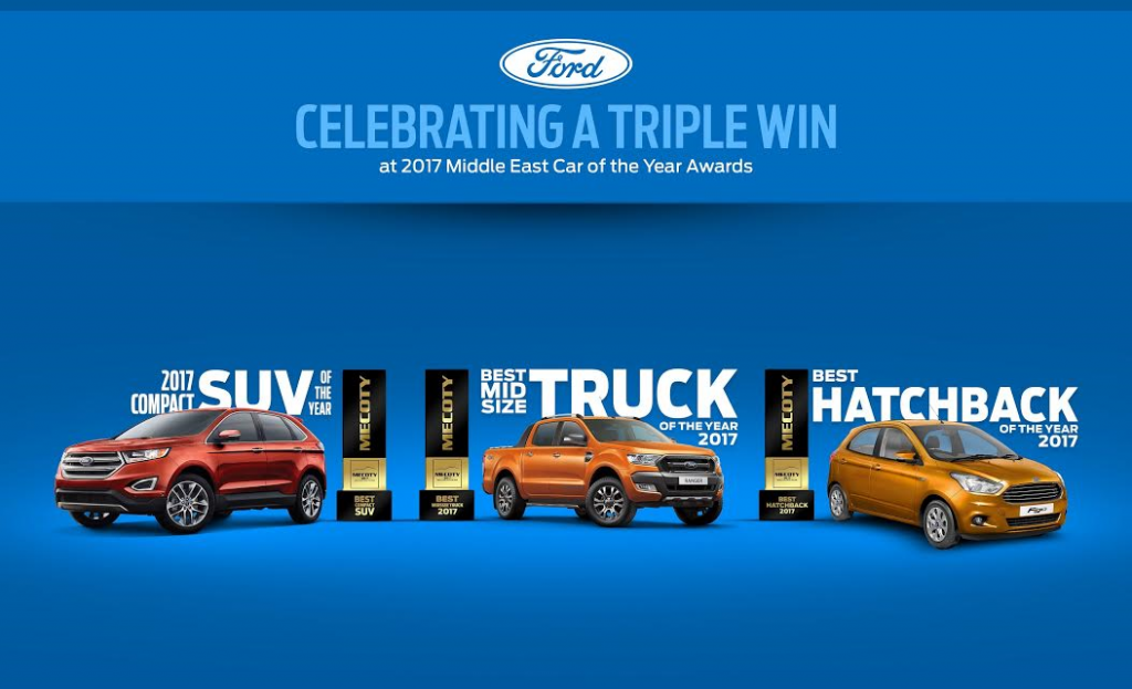 Ford came up winner in three different segments at the Middle East Car of the Year awards ceremony, held in Abu Dhabi over the weekend.