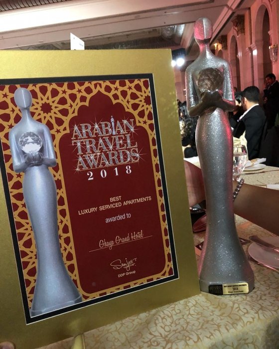 Ghaya Grand Hotel won the Arabian Travel Awards 2018 for the Luxury Serviced Apartment Hotels category at a glittering ceremony held at the JW Marriott Hotel, Deira on 20th September 2018 received by Mr. Ossama Kachkouche, Director of Sales and Marketing.