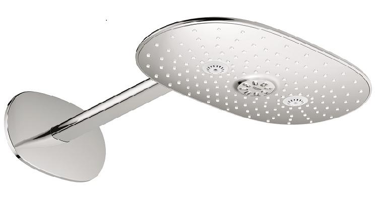 GROHE SmartControl is available as part of a GROHE Rainshower® system comprising an innovative head shower and a hand shower set. The lozenge shaped GROHE Rainshower® 360 head shower echoes the elegant lines of the chassis body. Measuring an impressive 360 by 220 millimetres, it uses a high quality metal shower base to produce a wide-bodied and uniquely soft GROHE Rain O2 or Rain spray. The choice between the two patterns is made at the time of installation depending on users preferring the spray to be infused with air bubbles or not.