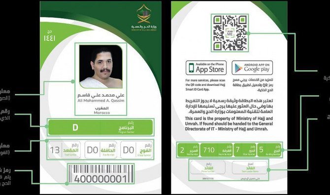 The smart ID cards will contain barcodes holding personal, medical, and residence information, and will also help guide pilgrims to their residences in Mashaer through kiosks distributed throughout the area.