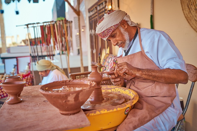 The Heritage Village is the fruit of cooperation between several government bodies that aim to preserve and showcase Emirati culture to the public. First, the General Women's Union providing women's workshops by several female experts in traditional handicrafts using yarn mills and weaving to produce a variety of textiles like Al Sadu, Talli, wool and weaving carpets. In addition, there are many other traditional crafts in the village that will remind new generations of life back in the old days.