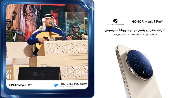 HONOR, a global leading AI device ecosystem company, today announced its strategic partnership with Rotana Music Group during the Abdulrab Idrees Night tribute concert, held on 5 December at the Mohammed Abdo Arena as part of Riyadh Season. The collaboration brought together two leaders in culture and technology, with HONOR serving as the strategic sponsor and the HONOR Magic8 Pro positioned as the exclusive device used for concert photography and videography.