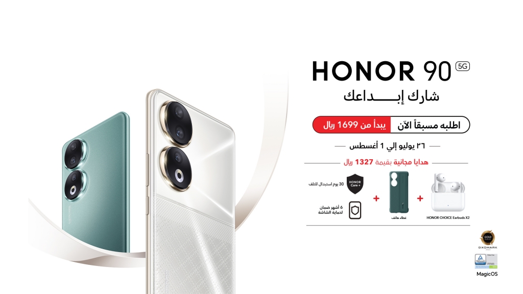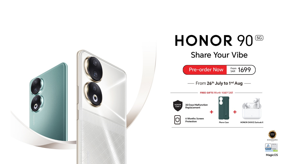 HONOR 90 is available now for pre-order from SAR 1699 for (8GB+256GB) version and SAR 2099 for (12GB+512GB) version with free gifts worth SAR 1327 including Free Earbuds, HONOR Care+ & more. Consumers can pre-order HONOR 90 through Jarir Bookstore, eXtra, STC, Zain, LuLu, noon, Amazon and other retail shops.