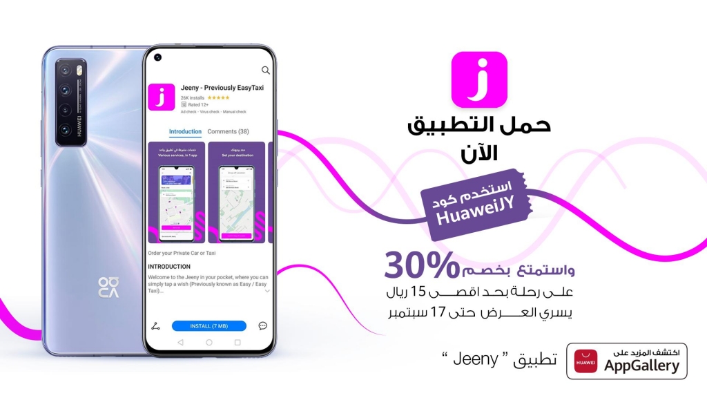 Huawei Consumer Business Group (CBG) has collaborated with Jeeny, a Middle Eastern-based mobile application that hosts multiple services to ease daily consumer needs such as transportation, integrated wallet top-up transactions, mobility, and much more to launch a Jeeny mobile app on HUAWEI AppGallery that is fully integrated with features of Huawei Mobile Services (HMS).