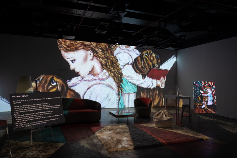 kanvas, a new creative hub in Dubai, transforms artworks by 12-year-old Karolina Sávolt into a 20-minute immersive projection experience that transports viewers to the artist's imaginary living room. The video art exhibition features eight oil paintings showcased in a new digital perspective reflecting a young girl’s fantasy depicted in feminine figures, fairy-tale-like creatures, geometric patterns, and vibrant colours. Titled "Karolina's Universe," the free-admission show runs until October 31 at kanvas, located in Al Khayat Art Avenue, Al Quoz Industrial 1, Dubai.