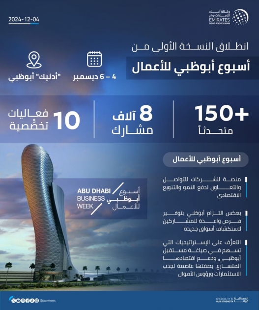 The inaugural edition features ten specialised events, most notably the Abu Dhabi Business Forum, which will tackle key topics such as global investment dynamics in Abu Dhabi, business clusters, regulations and public-private partnerships.