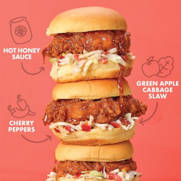 This limited-time burger is a new, spicy take on Shake Shack’s classic Hot Chick’n burger. It is crafted from 100% all-natural chicken breast – with no antibiotics ever - seasoned and crisped to perfection and tossed in a hot honey sauce. To add some crunch, the chicken sits atop a slaw made from crisp apples, cabbage and bits of cherry peppers, served in a pillowy potato bun.