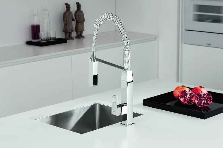 Designed to bring a breath of fresh air to modern kitchens, the new GROHE Eurocube kitchen faucet with professional spray offers the very best in terms of both form and function. Here is a one-of-a-kind combination of minimalist cubic aesthetics and user-friendly technologies – just what passionate amateur chefs around the globe want for their kitchens.