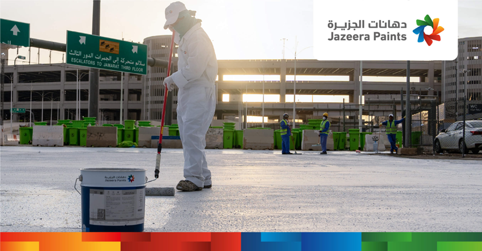 "Jazeera Paints", the leading company in the industry of paints, colors and construction solutions in KSA and MENA, is participating in applying the technology of reducing the temperature of asphalt surfaces through reflecting the sun's rays, as one of multiple entities, volunteers and staff that provide capabilities to serve and care for the pilgrims.