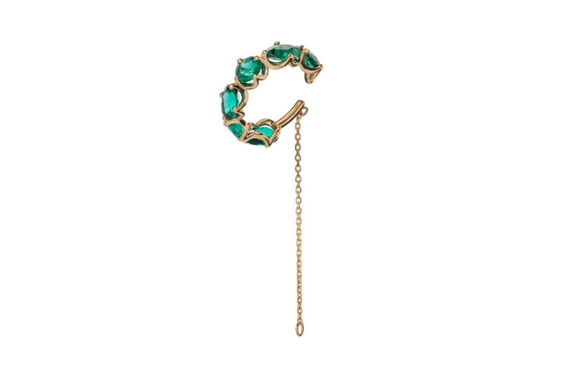 The Emerald Lace collection is dedicated to a powerful, timeless and infinitely beautiful tandem. Meditative emeralds and luxurious diamonds are complemented by rounded gold frames, mimicking weightless airy lace on the body.