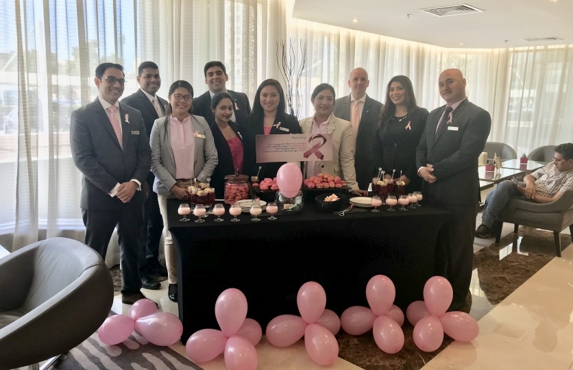 In observance of the campaign, all colleagues wore pink ribbons and special decorations gave the hotel lobby a pink glow. The day started with all department heads joining in with parts of their attire being pink. Events followed with complimentary cupcakes, cookies and meringue given out to any hotel resident. Colleagues gathered funds for the good cause during a tongue breaker competition.