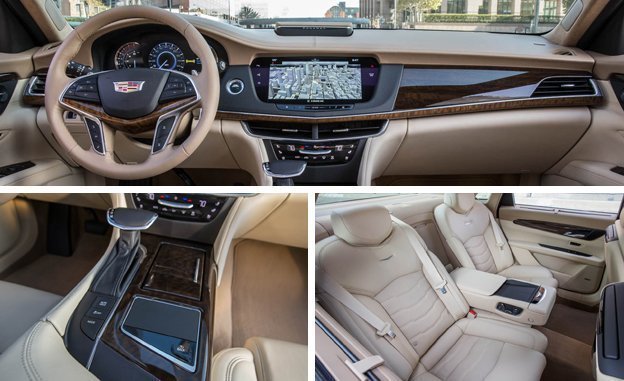 The CT6 offers more luxury than any Caddy before. The cabin breaks little new ground yet checks the right boxes in terms of ample front and rear stretch-out room, luxurious materials including glossy or open-pore wood trim, and harmonious design. The gently curved, horizontally oriented dashboard represents a departure from current Cadillac dash designs, and we approve. Front passengers get cozy in elegantly contoured chairs that may be Cadillac’s most comfortable ever. The electronic instruments are clear and colorful, if occasionally crowded, such as when text-heavy menus or the Night Vision display gobbles up space. Infotainment functions are once again handled by an updated version of the Cadillac User Experience (CUE) system, which now uses a larger 10.2-inch touchscreen as well as a console-mounted touchpad. We didn’t notice too many groundbreaking software or logic tweaks during our drive, but we already like the touchpad.