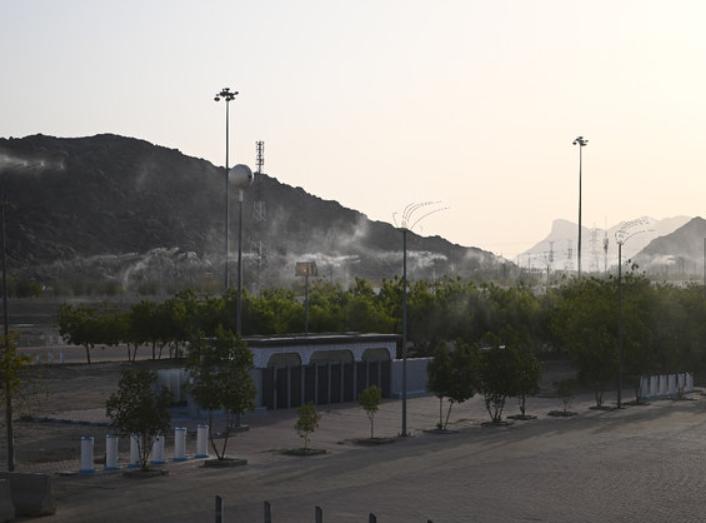 A massive sprinkler system with over 8,000 water posts has been set up at the holy sites to help cool pilgrims and reduce dust in the atmosphere.